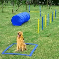 PawHut Agility Sport Pour Chiens équipement Complet Haies, Slalom + Sac De Transport Jaune – Jaune