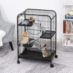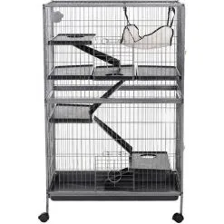 PawHut Cage Pour Petits Animaux Portable Avec 2 Portes Hamac Métal PP 52 X 52 X 113,5 Cm Gris – Gris