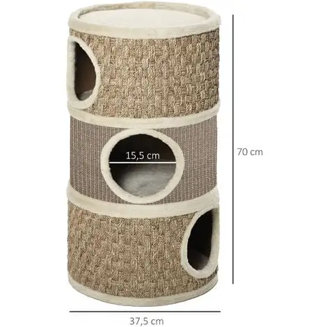Cette tour à griffer pour chat recouverte de sisal naturel et de cordes d’algues sera certainement le jouet et habitat favori de votre chat ! C’est l’accessoire incroyable pour jouer, dormir et se cacher. Doté de 3 zones supérieures avec passage interne, votre chat aura 2 fois plus d’espace pour se déplacer et se cacher. La plateforme d’observation est recouverte de flanelle douce et confortable.