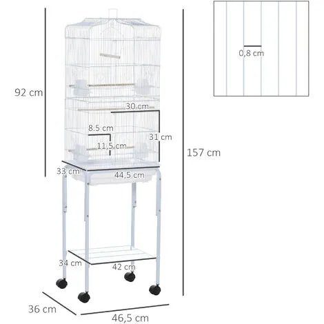 – Dim. cage à oiseaux : 44,5L x 33P x 92H cm