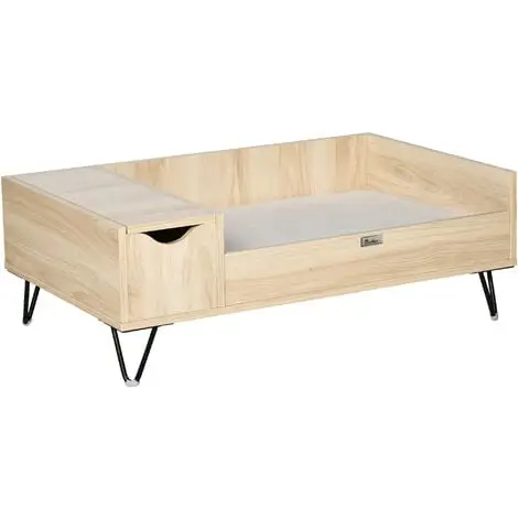 Ce magnifique canapé lit pour chien ou chat style cosy naturel aspect bois clair avec coussin moelleux déhoussable et coffre de rangement ajoutera une touche d’élégance supplémentaire à votre intérieur ! Votre animal ne pourra plus se séparer de son lit. Caractéristiques : – Canapé panier chien ou chat style cosy naturel aspect bois clair : idéal afin d’ajouter une touche d’élégance supplémentaire à votre intérieur – Petit coffre latéral intégré afin de ranger quelques jouets et accessoires de votre animal – Élevé du sol pour plus de confort et pour permettre la circulation de l’air de tous les côtés – Fabriqué en MDF aspect bois clair avec piètement en métal : jolie finition, ligne plus élancée, aération optimale pour votre animal – Coussin moelleux fourni grande douceur et déhoussable, panier avec rebord : confort optimal d’utilisation – Convient aux petits chiens jusqu’à 12 kg, sa longueur de corps doit être inférieure à 60 cm – Montage facile à l’aide du manuel d’assemblage illustré fourni Spécifications : – Couleurs : aspect bois, blanc – Matériaux principaux : MDF, peluche (100 % polyester), mousse, acier – Dim. totales : 89L x 56l x 31,5H cm – Dim. intérieures (sans coussin) : 65,5L x 52,4l x 18H cm – La hauteur de la face avant (à partir du sol) : 23,5 cm – Dim. espace rangement coffre : 52,4L x 18,5l x 16,5H cm – Dim. coussin : 65L x 52l x 4,5H cm – Hauteur pieds : 12 cm – Livraison effectuée en un colis – Réf. : D04-228