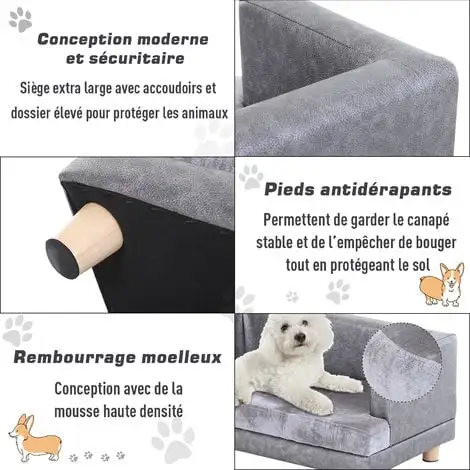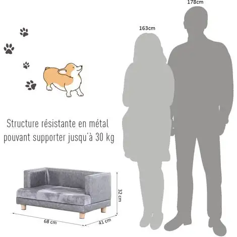 Ce splendide lit canapé chiens ou chats design contemporain ajoutera une touche d’originalité et de raffinement supplémentaire à votre intérieur ! D’une grande douceur et fourni avec un coussin, votre animal ne pourra plus se séparer de son lit !. Caractéristiques : – Lit canapé chiens ou chats design contemporain : idéal pour ajouter une touche d’originalité et de raffinement supplémentaire à votre intérieur – Convient aussi bien aux chiens qu’aux chats – Revêtement canapé en revêtement synthétique, revêtement coussin en peluche courte très douce – Coussin grand confort fourni (garnissage mousse haute densité) – Entretien facile, pratique à l’aide d’un éponge légèrement humide – Structure robuste en bois massif, 4 pieds en bois massif d’eucalyptus avec patins antidérapants : stabilité optimale, usage pérenne – Montage facile, manuel d’assemblage illustré fourni Spécifications : – Couleur : gris – Matériaux principaux : peluche courte, revêtement synthétique, mousse, bois massif, plastique – Dim. totales : 68L x 41l x 32H cm – Profondeur assise : 35 cm – Largeur assise : 68 cm – Hauteur assise : 17,5 cm (avec coussin) – Hauteur accoudoirs : 31,5 cm – Charge max. recommandée : 30 Kg – Livraison effectuée en un colis – Réf. : D04-135