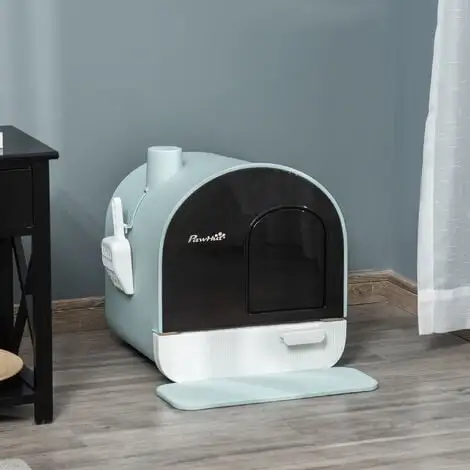 Cette maison de toilette pour chat PawHut est un accessoire à la fois pratique et esthétique dans lequel votre boule de poils va faire ses besoins. Ce meuble pour chat litière est équipé d’un tiroir à litière, d’une porte battante, d’une pelle qui facilitent le nettoyage de la litière et de filtres à charbon. Caractéristiques : – Joli design pour s’intégrer parfaitement à tout type de style d’intérieur – Litière chat fermée amovible pour un nettoyage facile et rapide – Les côtés hauts empêchent la litière de tomber – Livré avec une pelle attachée sur le côté pour faciliter l’entretien – Porte battante pour faciliter l’entrée et la sortie de votre chat – La structure en plastique est solide et durable – Toute équipée : pelle, filtre à charbon et tapis inclus – Assemblage requis Spécifications : – Couleur : bleu – Matériau principal : polypropylène – Dim. totales : 43L x 44l x 47H cm – Dim. intérieures : 38L x 34l x 8,5H cm – Dim. de la porte battante : 18L x 22,5H cm – Dim. du tapis de litière pour chat : 45,5L x 17l cm – Livraison en un colis – Réf. : D31-050