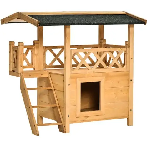 Cette superbe niche en bois massif de pin sur pied permettra à votre chien de s’abriter de la pluie et du vent. Son toit bitûmé imperméable, sa structure en bois massif de pin pré-huilé, et sa conception sur pieds permettront à votre toutou d’être confortablement installé au sec par n’importe quelle condition météorologique ! Caractéristiques : – Maison lodge idéale pour créer un petit nid douillet extérieur à votre animal – Atout charme supplémentaire de votre jardin – Conception, fabrication originale et haut de gamme – Terrasse aménagée et entourée d’une barrière pour la sécurité de votre chien ou chat – Toit bitumé étanche coloris vert : permet à votre animal de s’aérer au sec par tous les temps – Structure en bois massif de pin robuste pré-huilé – Escalier latéral à 2 marches pour faciliter l’accès de votre chien ou chat à la terrasse – 2 niveaux pour que votre animal s’amuse, joue ou se repose au choix et à volonté ! – Possibilité d’installation en intérieur et extèrieur – Facile à installer grâce au manuel d’assemblage illustré fourni Spécifications : – Couleur : bois massif de pin pré-huilé, vert – Matériau : bois massif de pin, bitume – Dim. totales : 77L x 50l x 73H cm – Hauteur de la barrière en terrasse : 15 cm – Dim. escalier : 35L x 19,5l cm – Dim. niche : 50L x 38l x 31H cm – Dim. porte entrée : 15l x 18,2H cm – Dim. toit : 77L x 50l cm – Livraison effectuée en un colis – Réf : D30-076