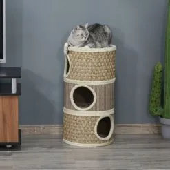 – Maisonnette sur pieds grattoir chat 2 en 1 design