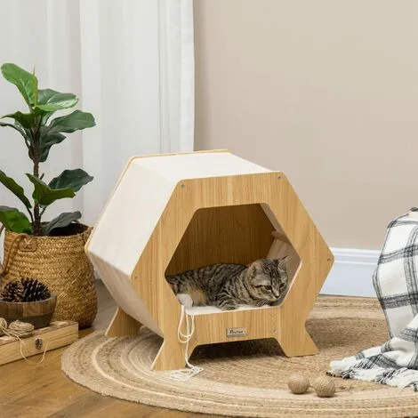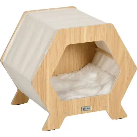 Cette superbe maisonnette panier pour chats vous permettra d’offrir à votre boule de poils tout le confort, chaleur et quiétude dont elle a besoin. Dotée d’un coussin amovible aspect fourrure grande douceur et d’un grattoir en jute naturelle, cette niche pour chat sera idéale pour se cacher, gratter ou se reposer !